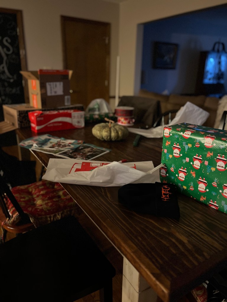 My goal was to have everything finished in time for Monday, but I didn’t succeed. I have presents to deliver to my mom (I ordered them for her). In addition to that, this table in the dining room needs to be cleaned up and set properly.