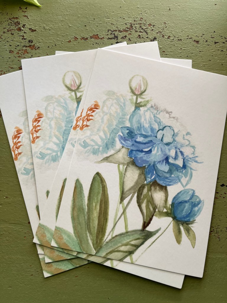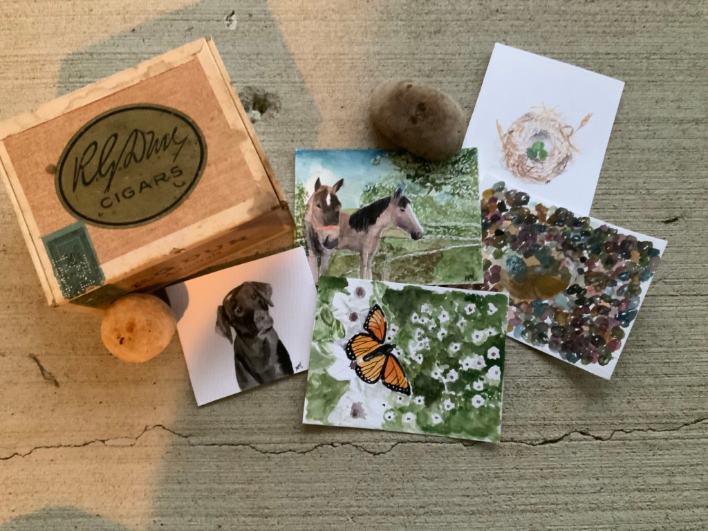 In 2019, I decided to watercolor paint every day, motivated to improve my artistic skills. I had taken a watercolor class in high school, where I learned the basics of this delicate art form. I wondered if I could remember anything I was taught. Not so much did I recall every detail, but I did teach myself how to meander through the creative process. Each day presented a new canvas. As I gained confidence, I started selling my works . I then made my paintings into tea towels, bags, note cards, and stickers.