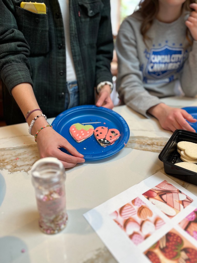 Hello and good morning. Did you have a good weekend? It was rainy and cold here. Sunday evening, a bunch of lady youth sponsors from my church and I hosted a dinner for some teenage girls. We had 9 girls attend, from freshmen in high school to seniors. Our friend opened her home and organized the whole dinner. Every sponsor had jobs to do. Some fixed appetizers, while others went grocery shopping and cooked the main meal. Others were responsible for buying items for the goodie bags. Additionally, one sponsor wrote a devotion and discussion questions. Others led the craft and the cookie decorating. Thank you, Dana, Elizabeth, Alpha, Shelly, Kellie, and Amanda for all your work. I think it was a success.