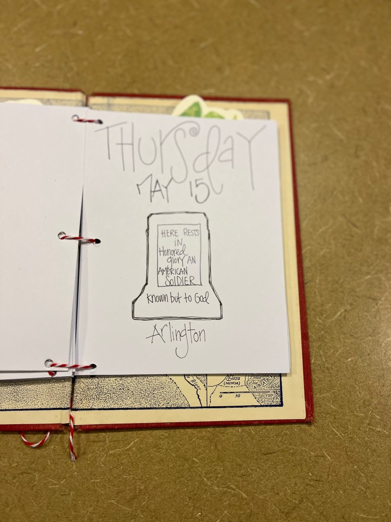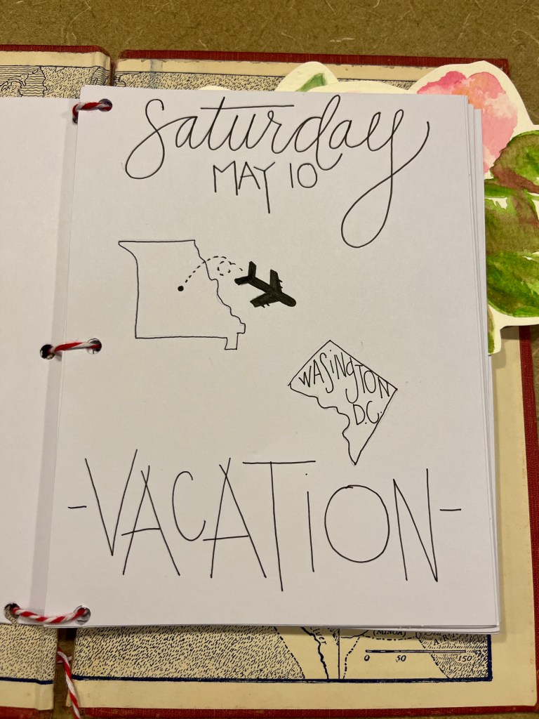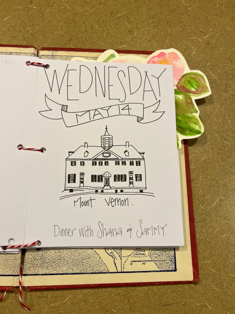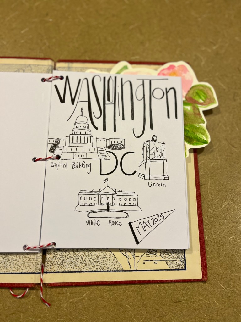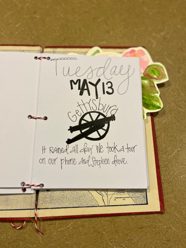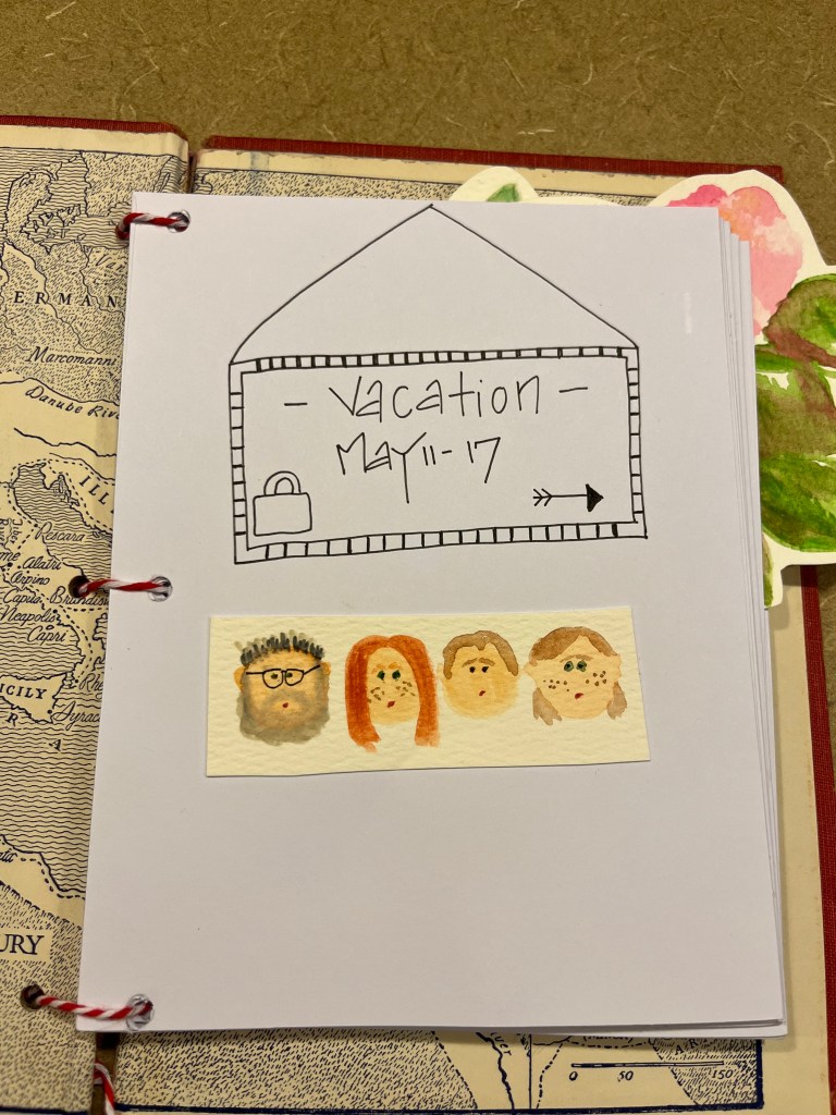 Hello friend! Happy Wednesday. I hope the weather is good where you are. Here it is pretty. Last week on vacation, if you followed my stories, I shared a piece of paper. It showed a drawing and our destination for that day. There was a reason for that piece of paper; I was making a little scrapbook of our trip.