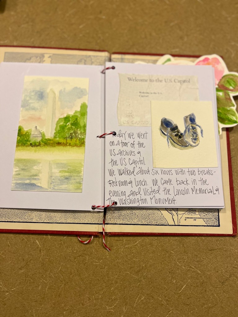 I took my watercolors to give me something to do while the boys slept in. I painted all the tiny paintings while in D.C. except for what is on the cover.