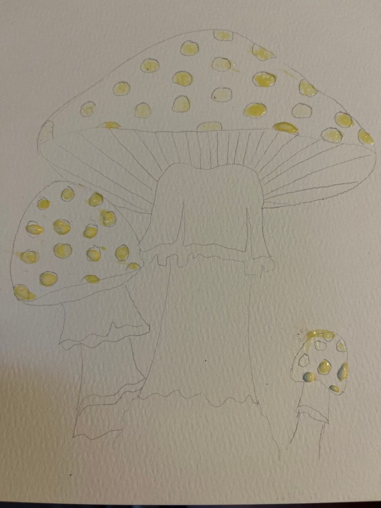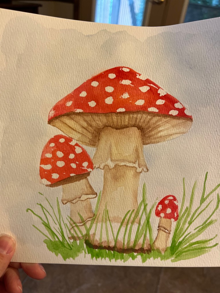 Oh, I did prepare some lessons for my art class yesterday that I will be teaching when I get home from camp. I thought we could watercolor a mushroom together as one of the lessons. We will start by exploring different shades of red and orange, mixing them to create a realistic look, and then I’ll guide the student on how to layer the colors to give depth to the mushroom. I believe this project will spark creativity.