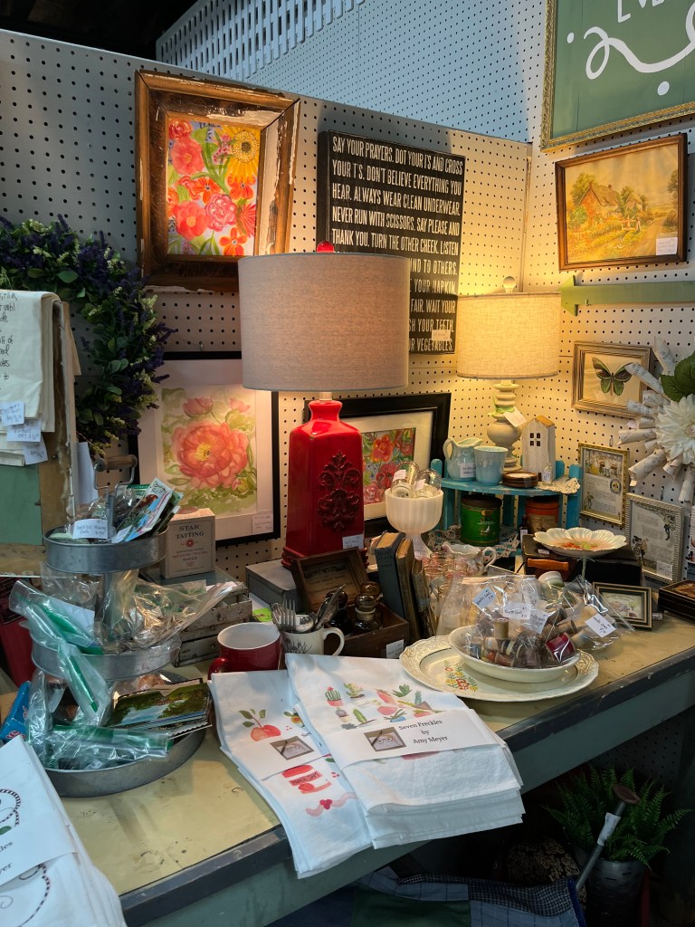 Good Morning, friend! I can’t believe it is already Wednesday; the week seems to be flying by at an incredible pace. Time really does have a way of slipping through our fingers, doesn’t it? Last time we chatted, I shared all the wonderful finds I discovered while thrifting with Mr. Handsome. It was such a fun outing. I mentioned that I was planning to work in my booth to add some of those items. If you’ve been following my stories, you might have already seen my booth pictures after I reworked everything. I really committed to creating a cozy and inviting atmosphere, and I’m so proud of how it turned out! I’d love to share those photos with you here if you haven’t seen them yet.