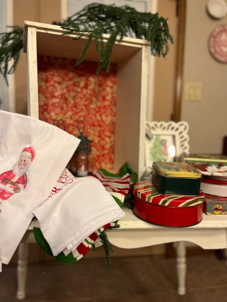 Yesterday, I sold a dresser that I has been in my booth for quite some time. My booth’s items are dwindling quickly, so today I am going to spend some time working there to ensure everything is fresh and inviting—sweeping the floor, rearranging the layout to maximize visibility, and adding new items to attract more customers. While I don’t have any more autumn items left, I have decided to take a leap and bring in some Christmas pieces instead. I can’t help but worry that it might be too early for the holiday season, but this is the inventory I have on hand, so I’m just going to go with it and trust that the festive spirit will resonate with my shoppers. After all, showcasing the joy of the holidays can often inspire my customers to start their seasonal shopping earlier than they might have anticipated. Here is a picture of some the items I will be taking. I know what a mess!
