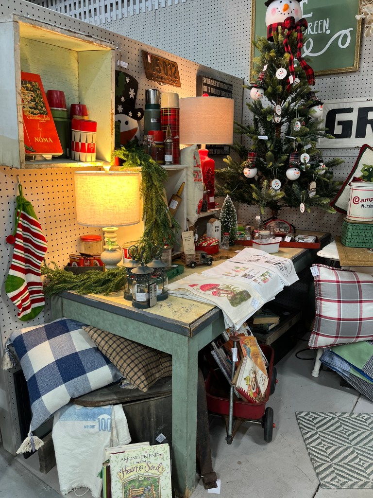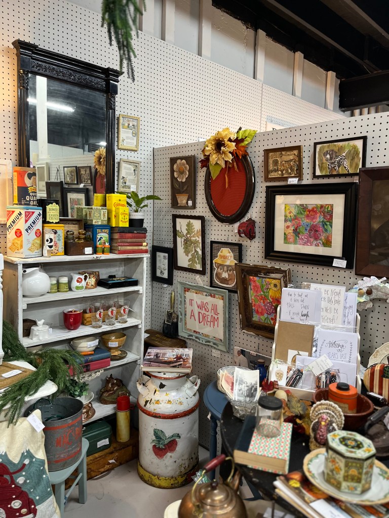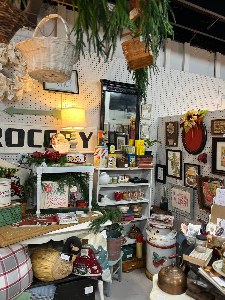 Today I am working at the antique mall where I have a booth. I’ve been filling in here and there as they need me, which allows me to immerse myself in the lively atmosphere of the mall. It is always fun to see what unique and interesting pieces people buy, and interacting with customers gives me a sense of joy as I witness their excitement. The ladies I work with are great. Did you see on stories where I changed up my booth? I had a piece of furniture sell, and that caused a big snowball of rearranging, adding, and fluffing, making my space feel fresh and inviting. I always strive to keep my booth appealing and engaging, so when something sells, it propels me to rethink the layout and the selection. I don’t have much autumn décor left, so I had to add some of my Christmas items in, blending the two seasons just enough to create a cozy holiday feel, hoping to attract early holiday shoppers.