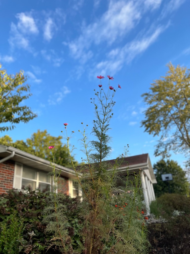 Do you remember when I started seeds in my garage of cosmos and zinnias? I put those little plants in the ground hoping they would survive, watering and tending to them daily, nurturing them as they reached toward the sun. A few made it through the hot weather and various pests. One of which, a cosmo, grew extremely big, towering over the others. I remember the package saying something like “large,” but I had no idea it would grow to be this large. In fact, I almost cut it down a few weeks ago because it was kind of an eyesore amidst the smaller blooms. But today, as I was watering the garden, I was greeted by a stunning display of bright blooms and full buds bursting with life. I couldn’t help but laugh to myself at how beautiful it had become, realizing how my initial impulse to remove it would have robbed me of this joy. I’m so glad I didn’t cut it down; it has transformed into a delightful centerpiece that I now look forward to seeing every day.
