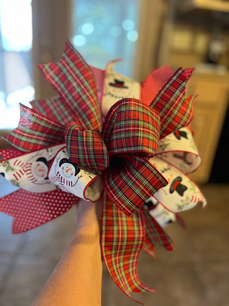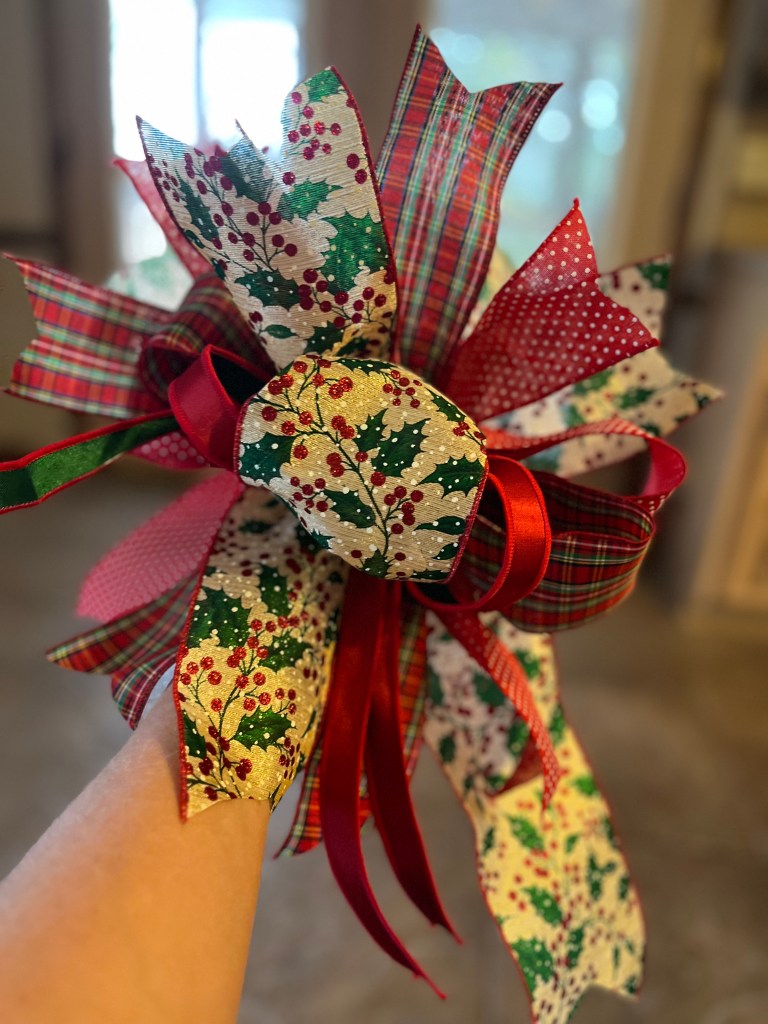 I’m tying bows for Christmas decorating. There is a satisfaction in making a big fluffy bow. I have offered them on my Facebook page, showcasing different styles and colors to suit various tastes. If you like what you see, let me know, and I will get back with you promptly to discuss your preferences and how I can help brighten your holiday décor with these beautiful creations.
