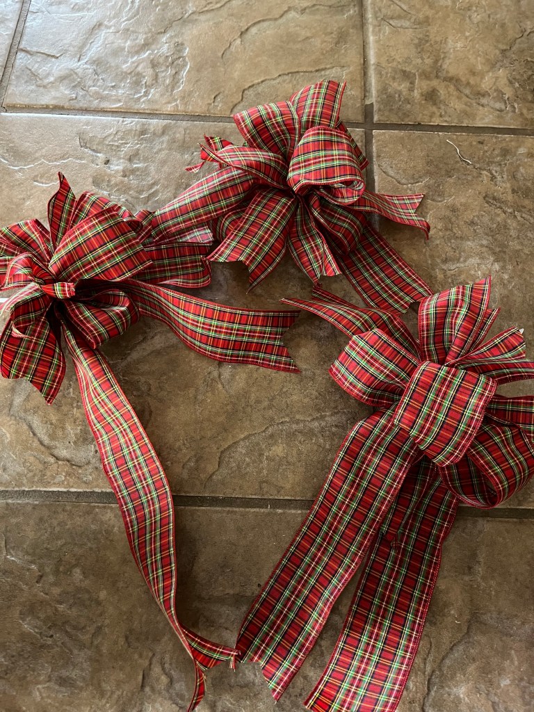 After church I had a friend pick up a bow that I tied for Christmas. She is going to put it on a lantern for display.