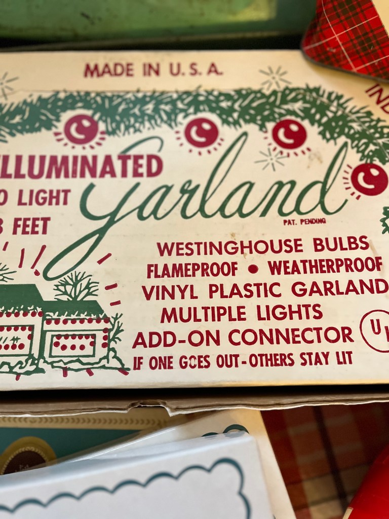 This box is so cool, and it has the original garland in it. It will be great for all the vintage Christmas lovers.