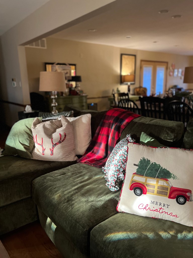 I got out our Christmas pillows. Mr. Handsome just loves all of the pillows I put everywhere (do you hear the sarcasm).