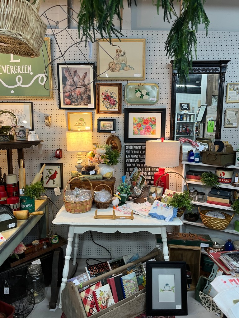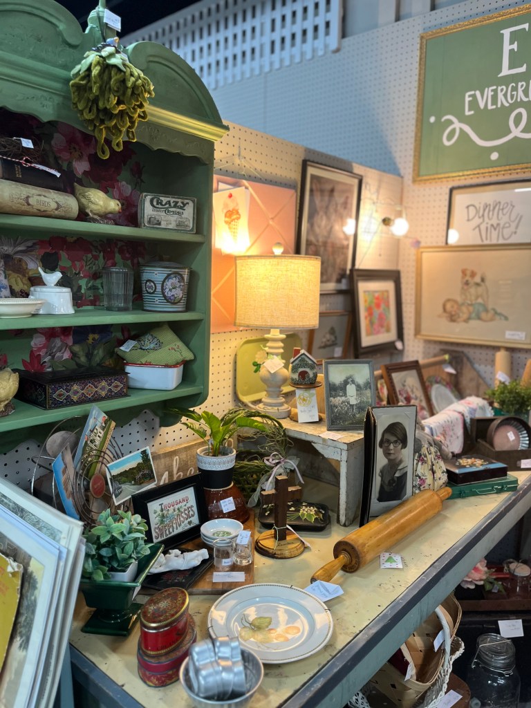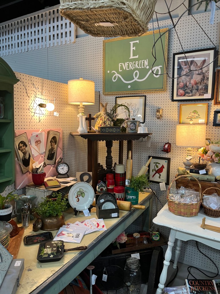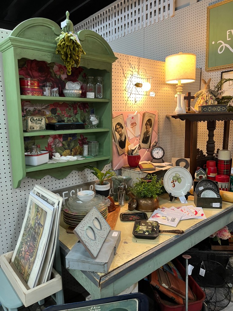On Monday, my sister went with me to rearrange my antique booth. It is a new month, which means new items needed to be added to refresh the space, giving it a different look.